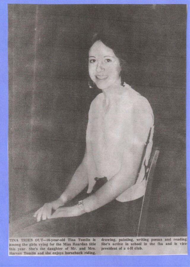 This page is from a scrapbook held by the Reardan Memorial Library about the Reardan Royalty. 1977 royalty 022