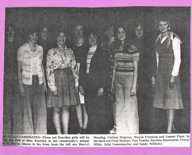 This page is from a scrapbook held by the Reardan Memorial Library about the Reardan Royalty. 1977 royalty 027