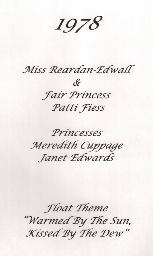 This page is from a scrapbook held by the Reardan Memorial Library about the Reardan Royalty. 1978 royalty 001