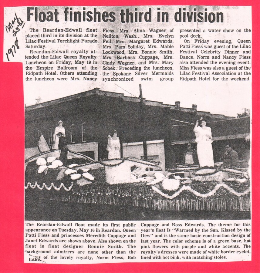 This page is from a scrapbook held by the Reardan Memorial Library about the Reardan Royalty. 1978 royalty 006