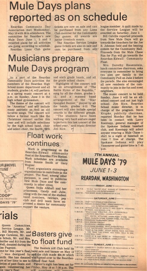 This page is from a scrapbook held by the Reardan Memorial Library about the Reardan Mule Days. 006