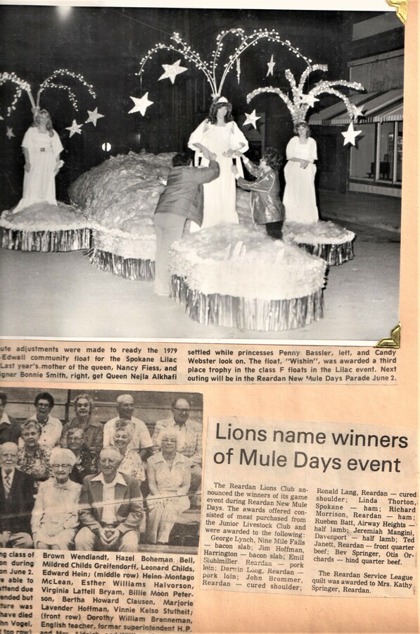 This page is from a scrapbook held by the Reardan Memorial Library about the Reardan Mule Days. 015