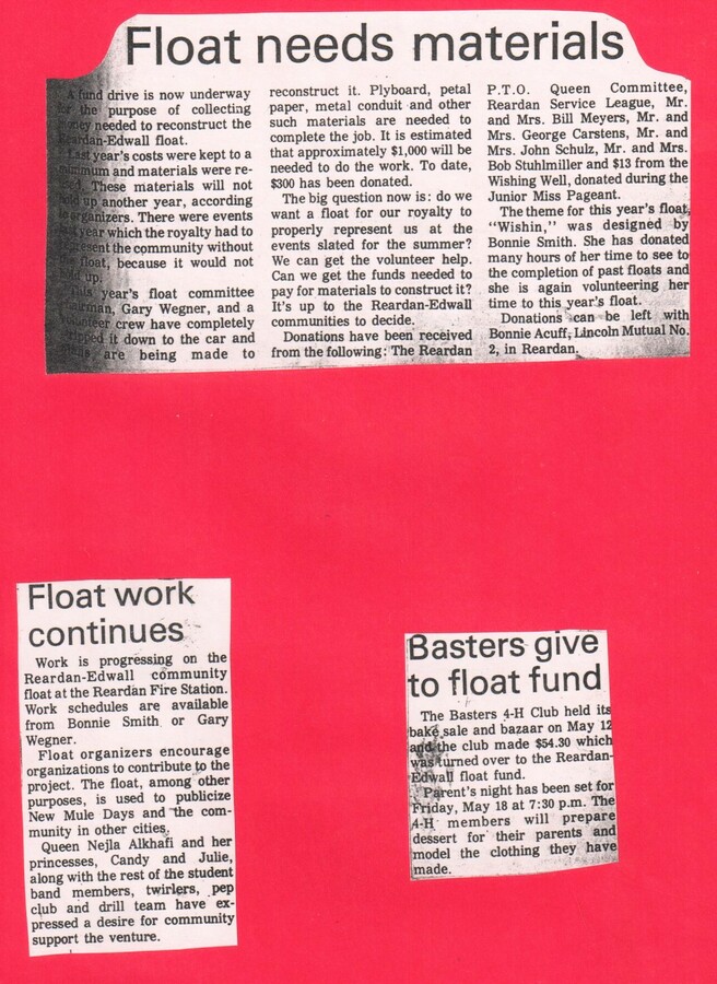 This page is from a scrapbook held by the Reardan Memorial Library about the Reardan Royalty. 1979 royalty 002