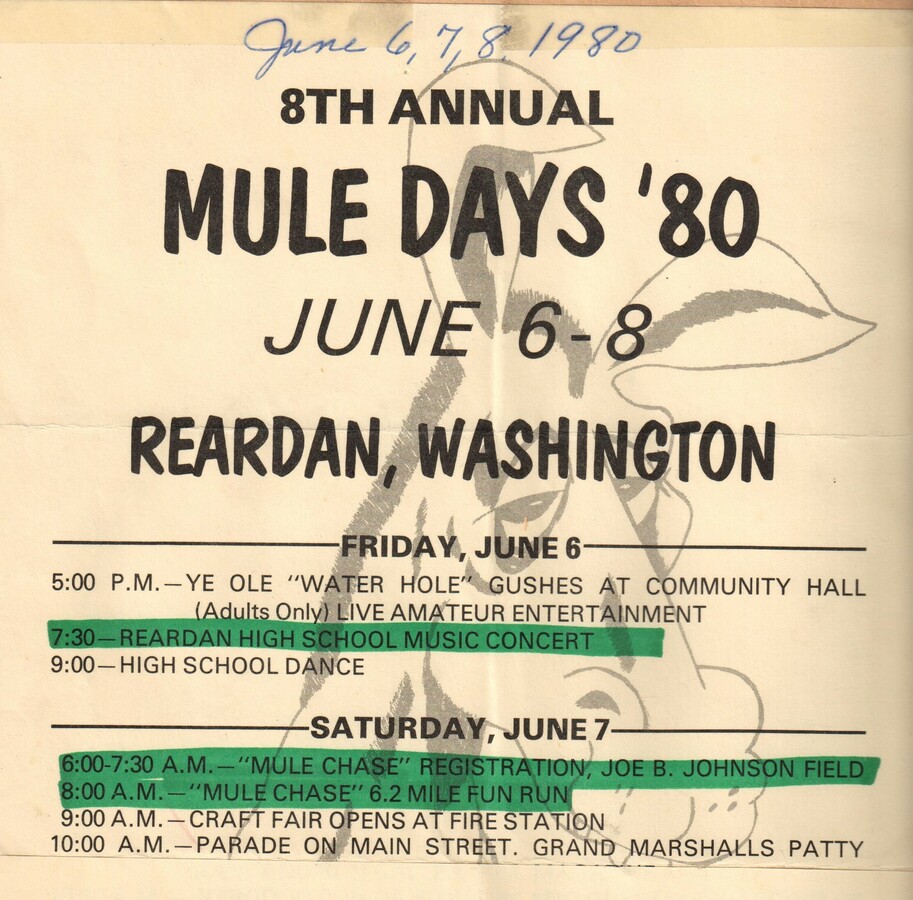This page is from a scrapbook held by the Reardan Memorial Library about the Reardan Mule Days. 000