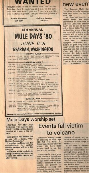 This page is from a scrapbook held by the Reardan Memorial Library about the Reardan Mule Days. 004