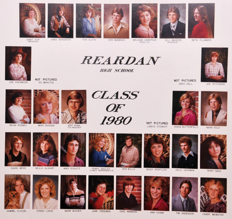Class composite for 1980. (Photo held by Reardan High School and harvested off of their website).