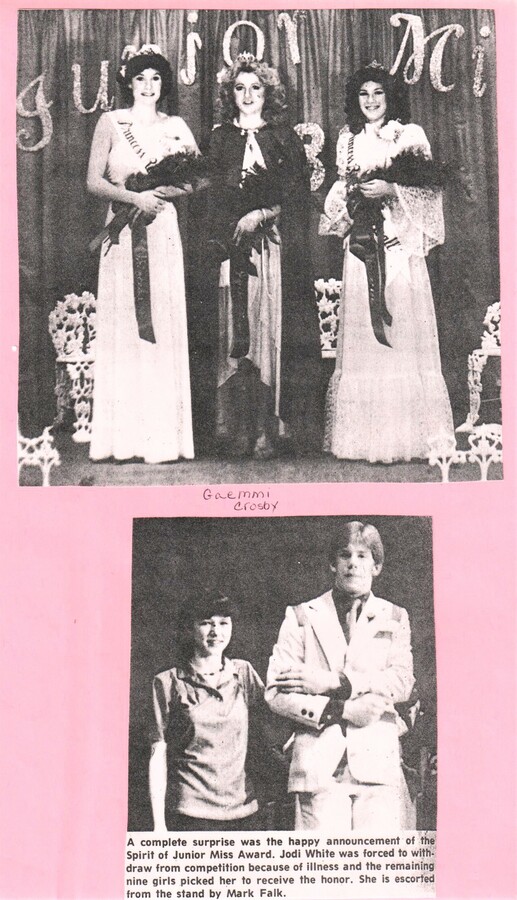 This page is from a scrapbook held by the Reardan Memorial Library about the Reardan Royalty. 1980 royalty 002