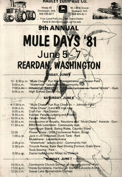 This page is from a scrapbook held by the Reardan Memorial Library about the Reardan Mule Days. 000