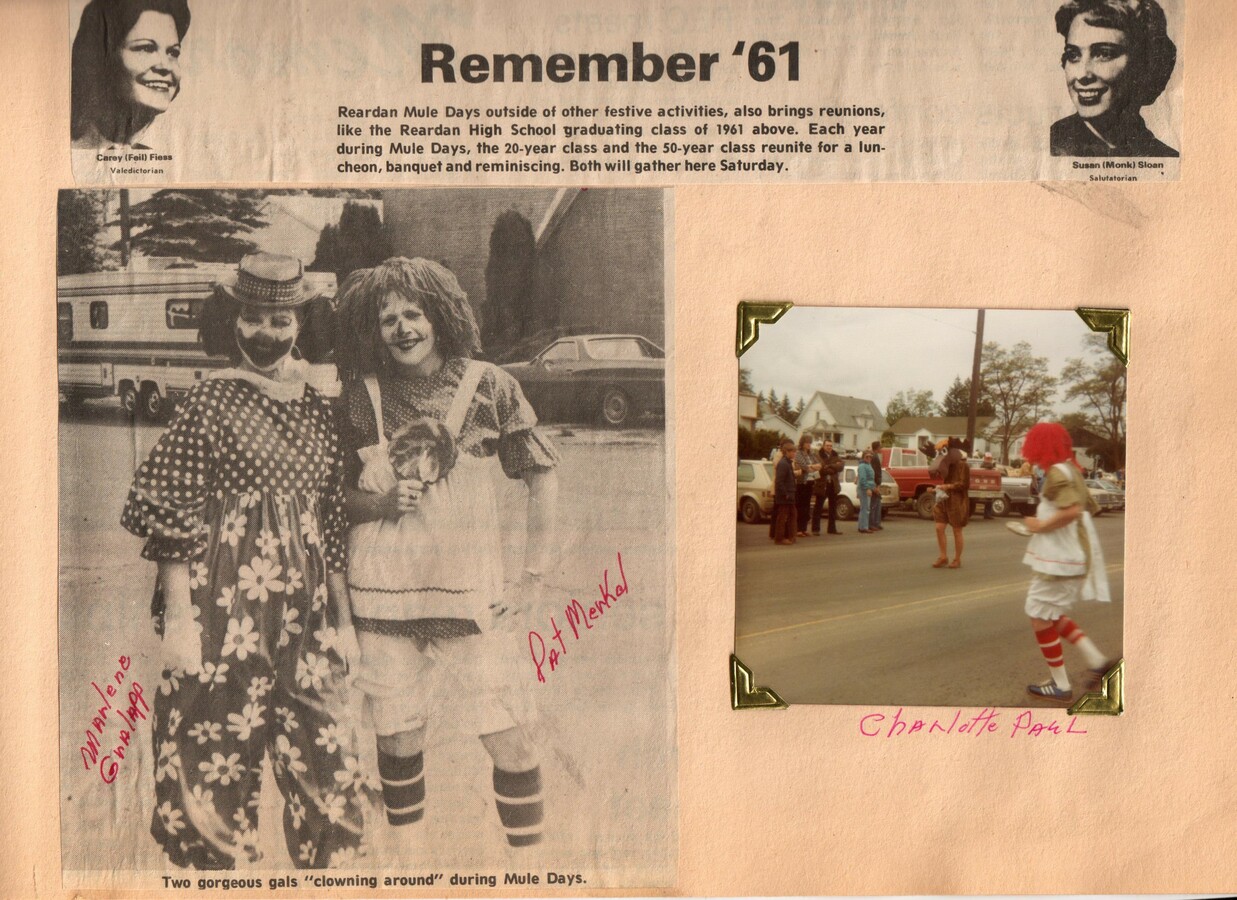 This page is from a scrapbook held by the Reardan Memorial Library about the Reardan Mule Days. 005