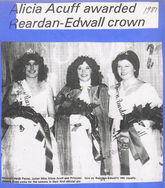 This page is from a scrapbook held by the Reardan Memorial Library about the Reardan Royalty. 1981 royalty 005