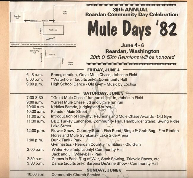 This page is from a scrapbook held by the Reardan Memorial Library about the Reardan Mule Days. 000