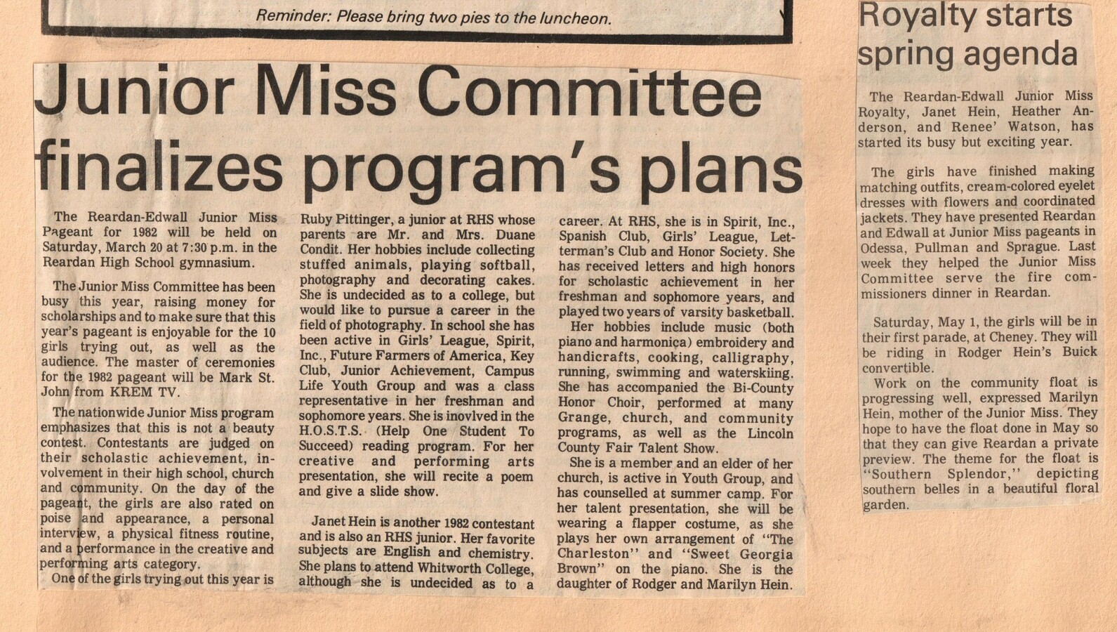 This page is from a scrapbook held by the Reardan Memorial Library about the Reardan Mule Days. 005