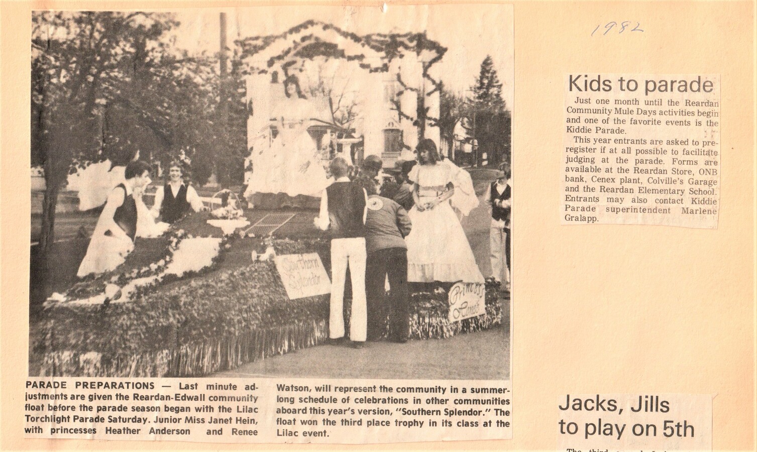 This page is from a scrapbook held by the Reardan Memorial Library about the Reardan Mule Days. 008