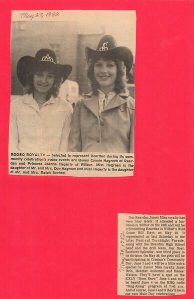 This page is from a scrapbook held by the Reardan Memorial Library about Reardan Royalty. 1982 royalty 005