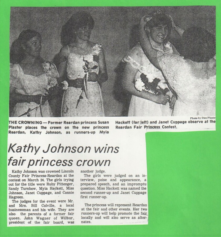 This page is from a scrapbook held by the Reardan Memorial Library about Reardan Royalty.