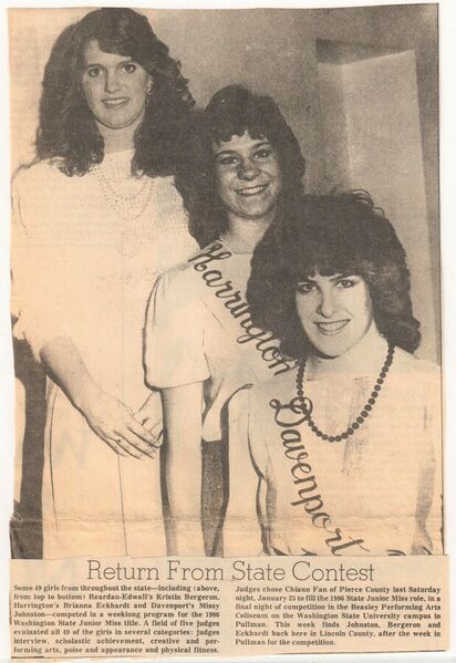 This page is from a scrapbook held by the Reardan Memorial Library about the Reardan Royalty. 1985 royalty 001