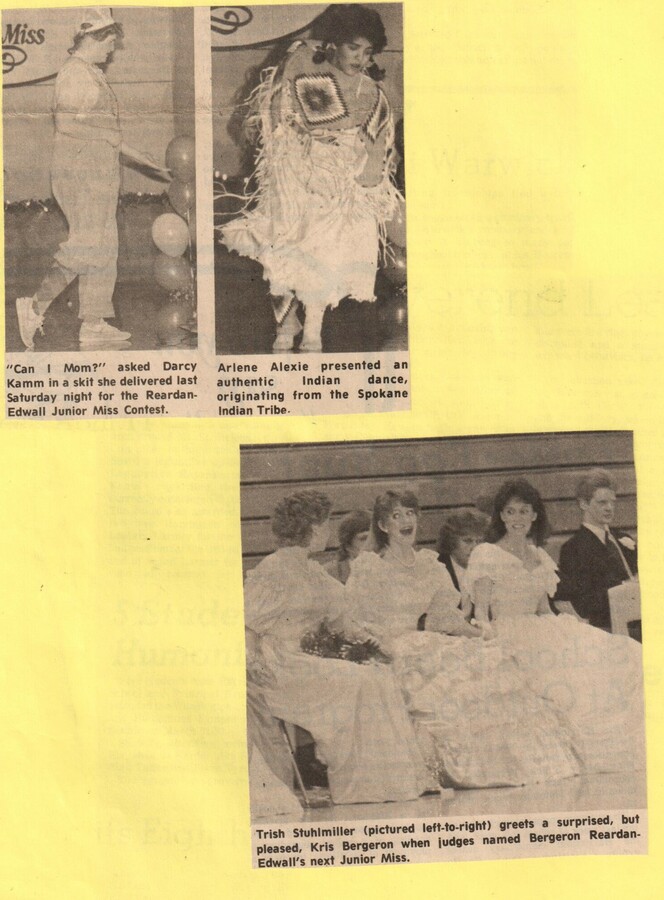 This page is from a scrapbook held by the Reardan Memorial Library about the Reardan Royalty. 1985 royalty 007