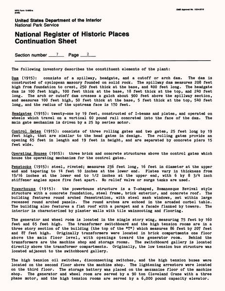 page of [1]. This was part of the national registration of a historic place for the Long Lake dam.