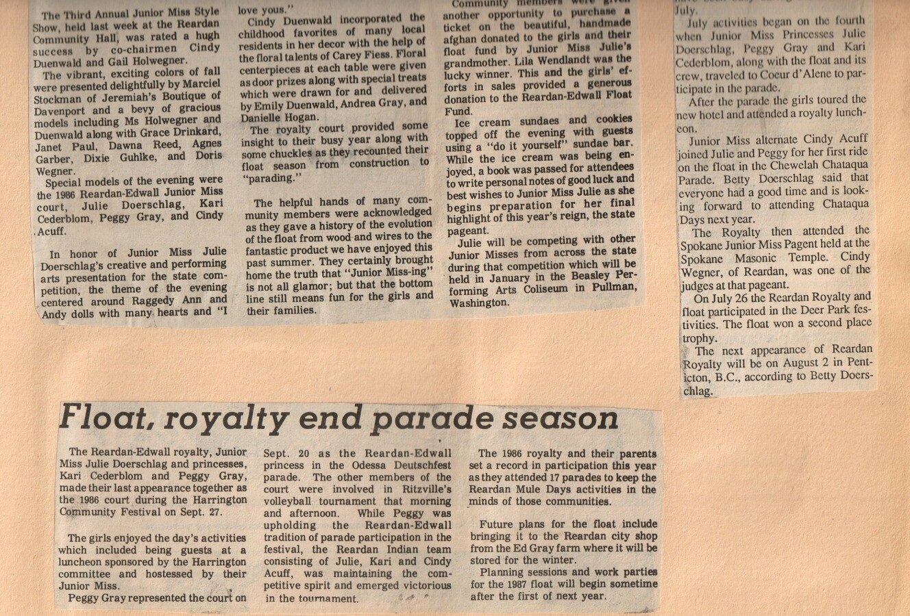 This page is from a scrapbook held by the Reardan Memorial Library about the Reardan Mule Days. 006