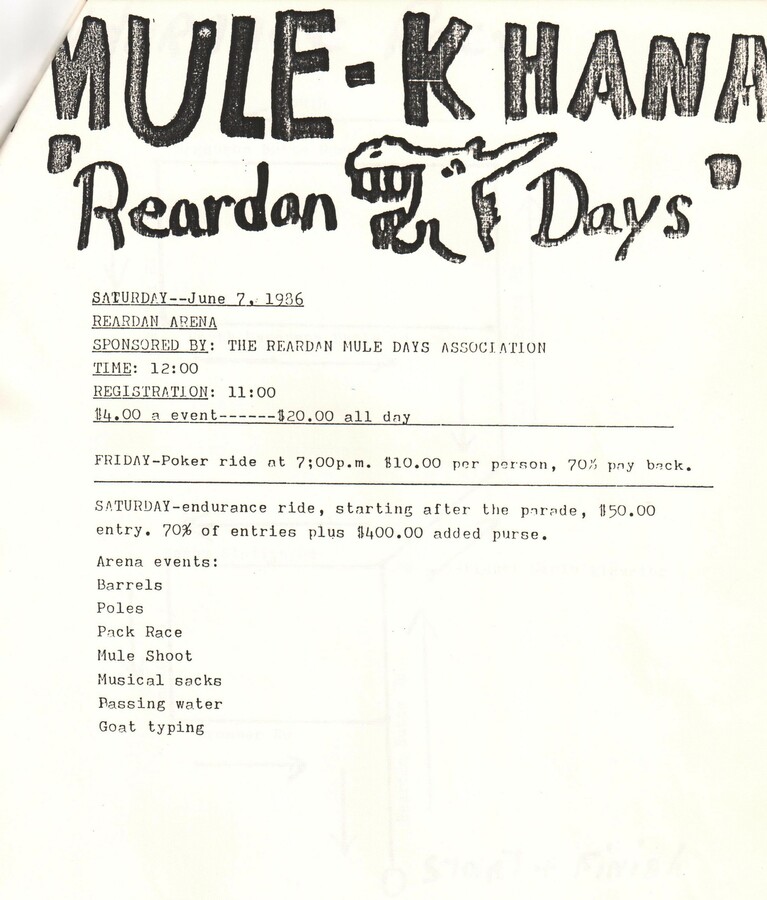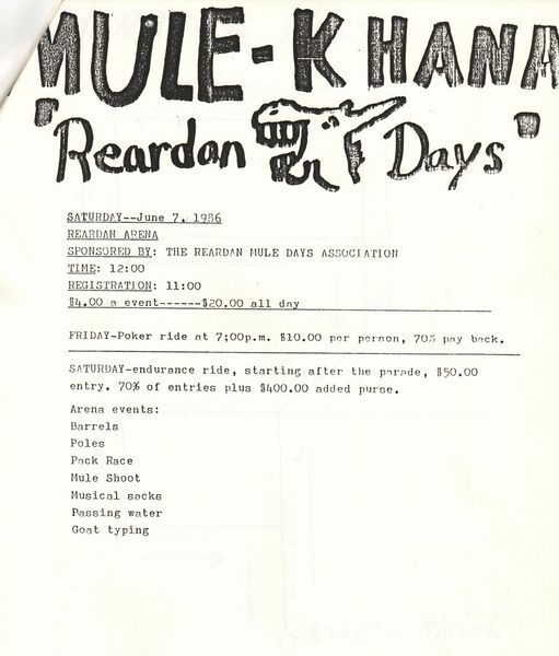 This page is from a scrapbook held by the Reardan Memorial Library about the Reardan Mule Days. 025