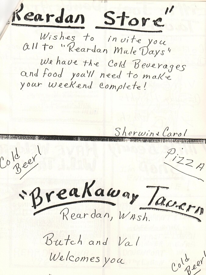 This page is from a scrapbook held by the Reardan Memorial Library about the Reardan Mule Days. 030