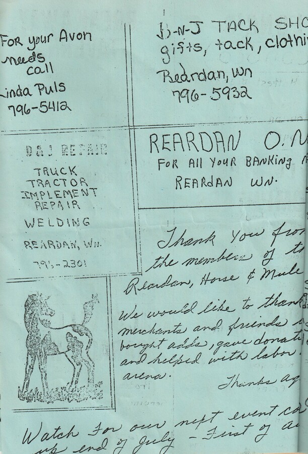 This page is from a scrapbook held by the Reardan Memorial Library about the Reardan Mule Days. 038
