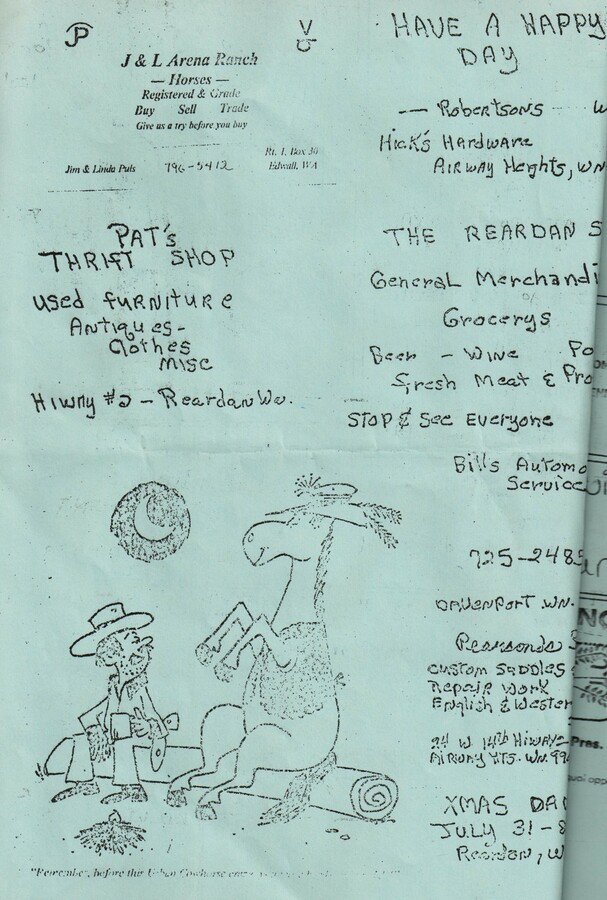 This page is from a scrapbook held by the Reardan Memorial Library about the Reardan Mule Days. 040