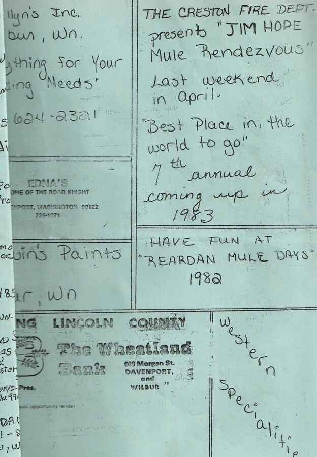 This page is from a scrapbook held by the Reardan Memorial Library about the Reardan Mule Days. 041