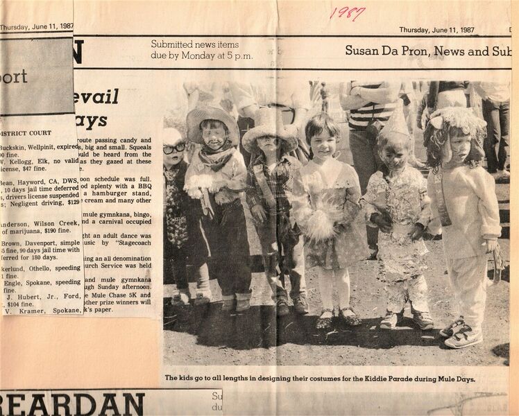 This page is from a scrapbook held by the Reardan Memorial Library about the Reardan Mule Days. 016
