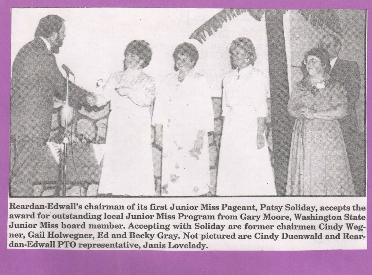 This page is from a scrapbook held by the Reardan Memorial Library about the Reardan Royalty. 1987 royalty 002