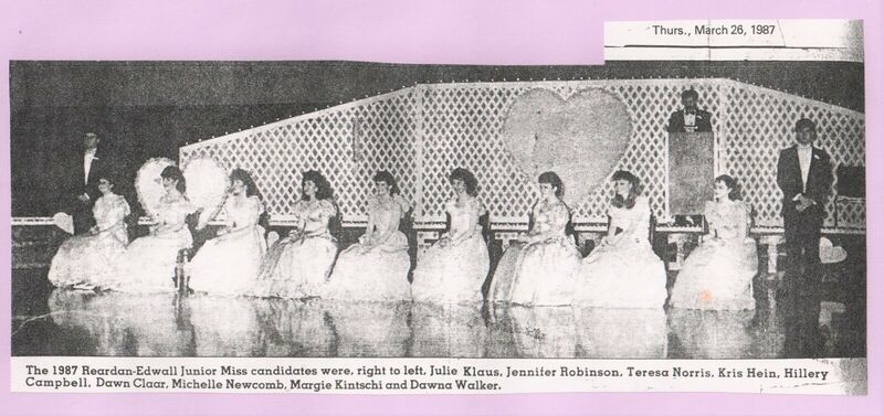 This page is from a scrapbook held by the Reardan Memorial Library about the Reardan Royalty. 1987 royalty 003
