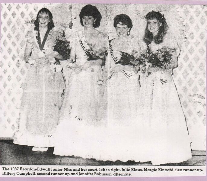 This page is from a scrapbook held by the Reardan Memorial Library about the Reardan Royalty. 1987 royalty 004