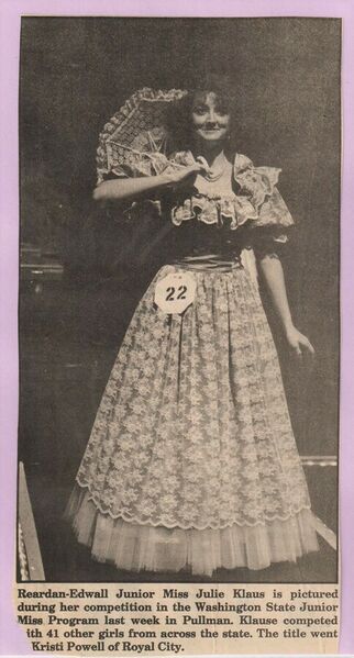 This page is from a scrapbook held by the Reardan Memorial Library about the Reardan Royalty. 1987 royalty 008