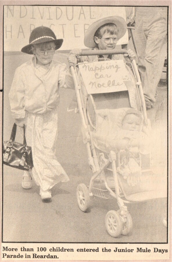 This page is from a scrapbook held by the Reardan Memorial Library about the Reardan Mule Days. 010