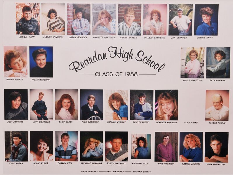 Class composite for 1988. (Photo held by Reardan High School and harvested off of their website).