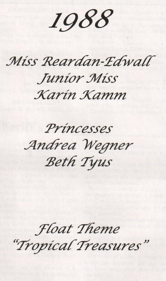 This page is from a scrapbook held by the Reardan Memorial Library about the Reardan Royalty. 1988 royalty 000