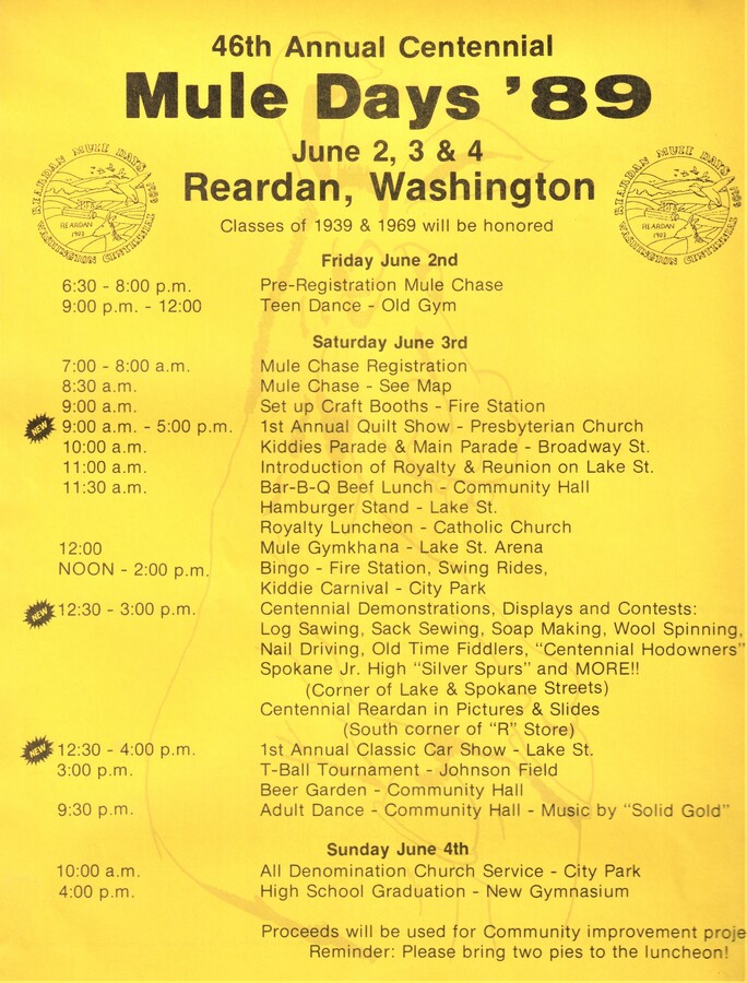 This page is from a scrapbook held by the Reardan Memorial Library about the Reardan Mule Days. 000