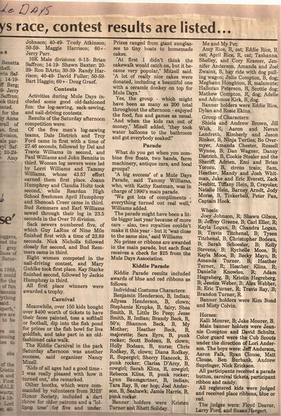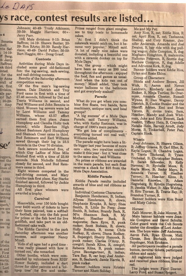 This page is from a scrapbook held by the Reardan Memorial Library about the Reardan Mule Days. 008