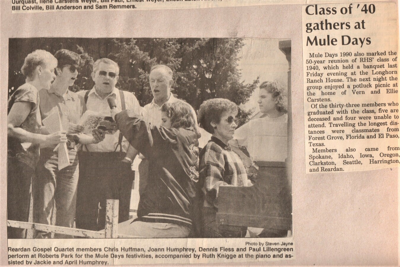 This page is from a scrapbook held by the Reardan Memorial Library about the Reardan Mule Days. 010