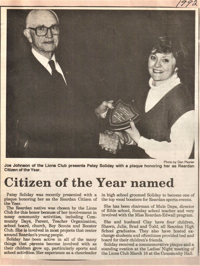 This page is from a scrapbook held by the Reardan Memorial Library about the Reardan Mule Days. 009