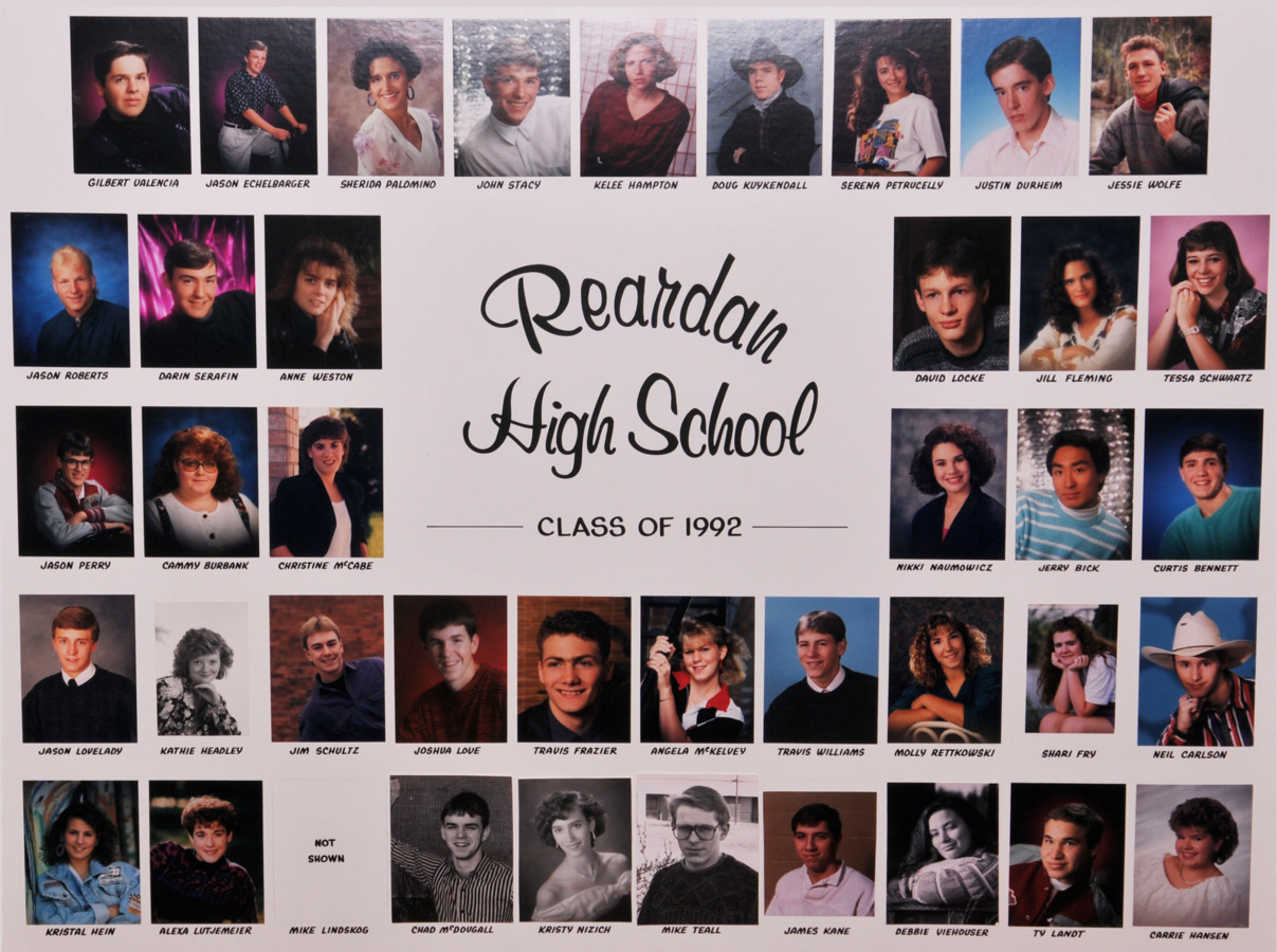 Class composite for 1992. (Photo held by Reardan High School and harvested off of their website).