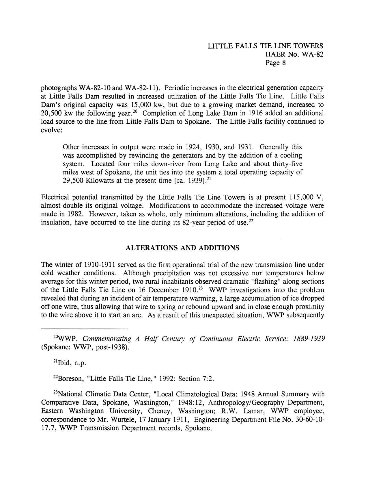 page of [1]. This was part of the historical American engineering record WA-82 for the power tie lines at Little Falls dam.