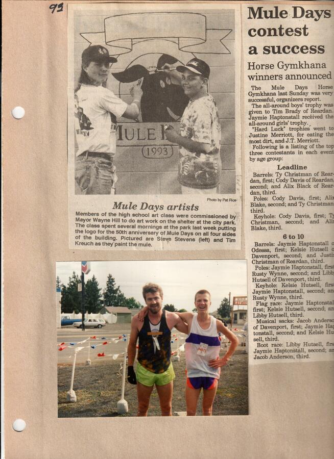 This page is from a scrapbook held by the Reardan Memorial Library about the Reardan Mule Days.