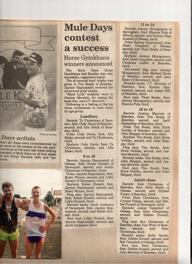 This page is from a scrapbook held by the Reardan Memorial Library about the Reardan Mule Days.