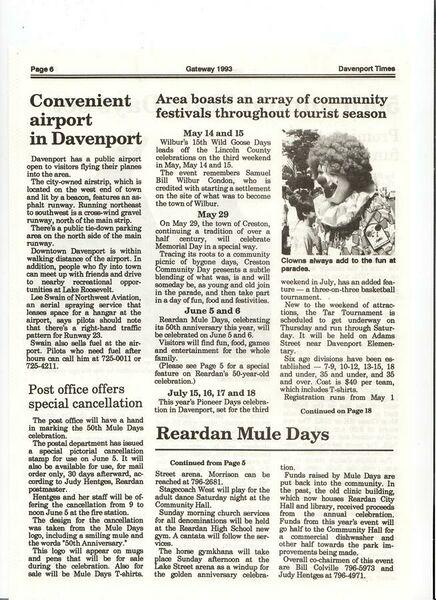 This page is from a scrapbook held by the Reardan Memorial Library about the Reardan Mule Days.