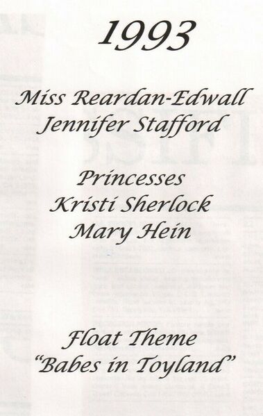 This page is from a scrapbook held by the Reardan Memorial Library about the Reardan Royalty. 1993 royalty 000