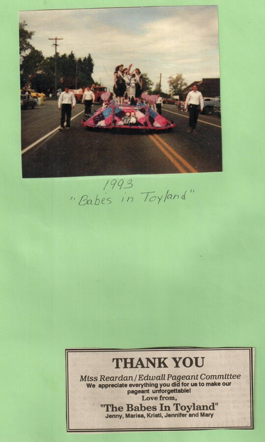 This page is from a scrapbook held by the Reardan Memorial Library about the Reardan Royalty. 1993 royalty 006