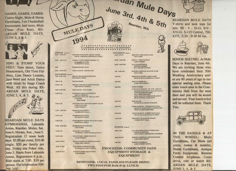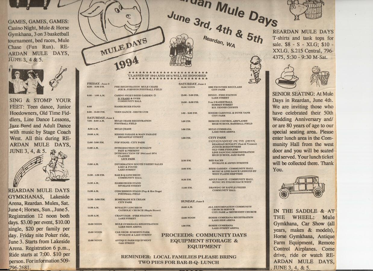 This page is from a scrapbook held by the Reardan Memorial Library about the Reardan Mule Days. 002
