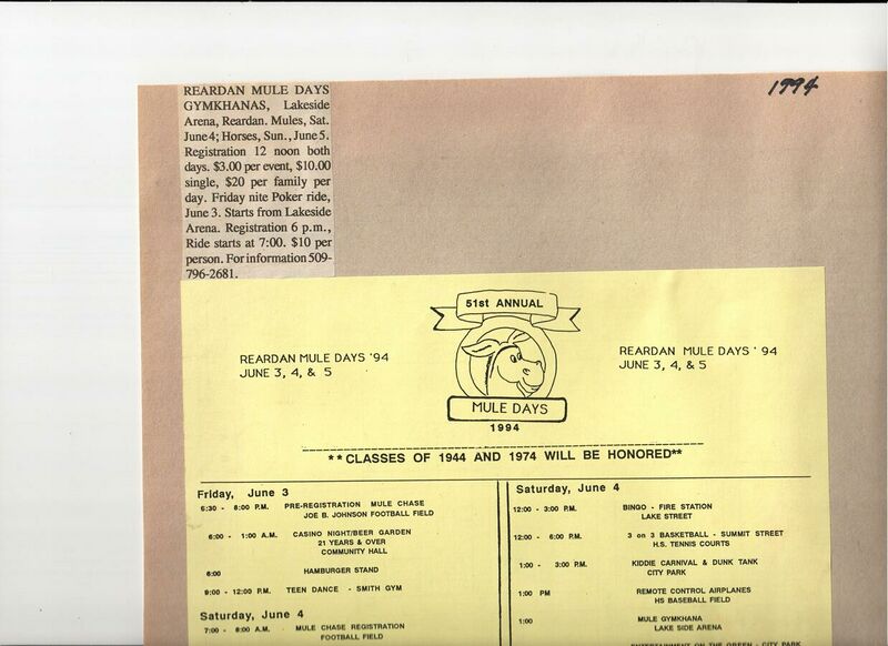 This page is from a scrapbook held by the Reardan Memorial Library about the Reardan Mule Days. 005