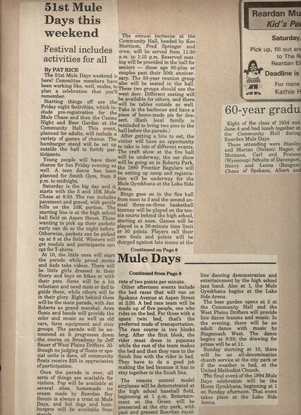 This page is from a scrapbook held by the Reardan Memorial Library about the Reardan Mule Days. 006